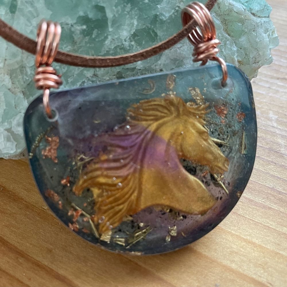 Fire Horse Orgone Pendant – Amber/Gold